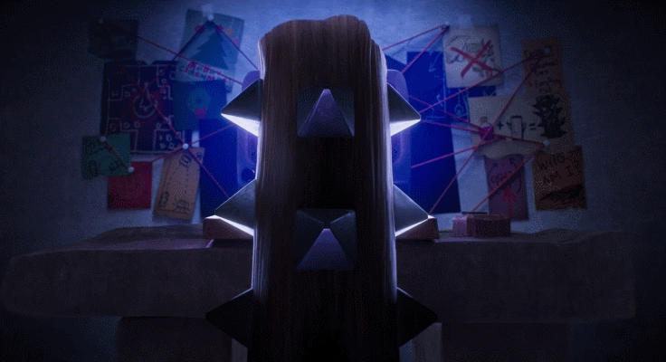 只是圣诞树的图片在电视上,而看电视是一个愤怒的滚木,墙上有很多贴纸,用红线连接,看起来像是一个做什么的线索。看来滚木对电视上放的东西很感兴趣,否则他也不会如此努力地去制造线索。