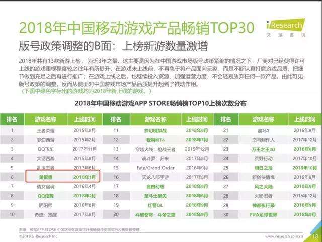 2018年,中国移动游戏APP STORE畅销书排行榜前10名排名前六