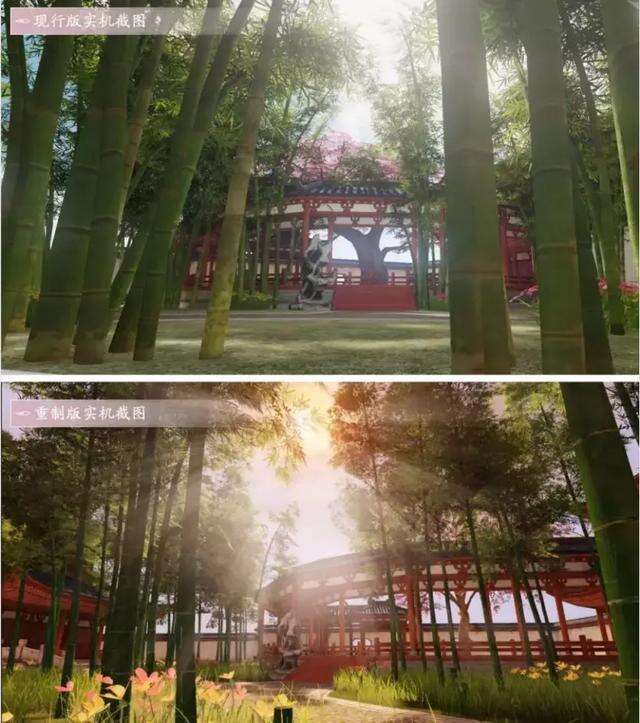 除了迭代明显的光影效果,游戏中很多场景都是以“进化的方式”建模的。《一梦江湖》中,大量的植被、水面、地图都得到了完整的重构,在直接感知上更加细腻逼真。有了强烈的光影加持,“风与草,湖与光”的动感江湖,可以说是在屏幕之上。