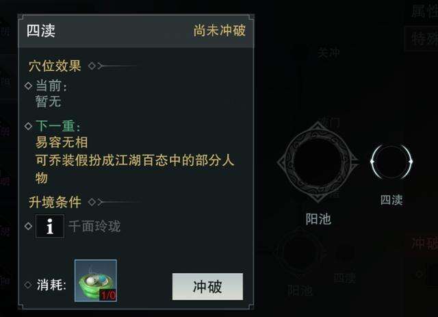在练经络的时候,玩家可以日复一日的苦练,日积月累的内功买经络,然后用灵丹妙药突破穴位。此外,其他形式的过程可以帮助练习在江湖上行走。就像买了算命老师的“无字天书”去试实际情况。运气好的话,有时间突破穴道。