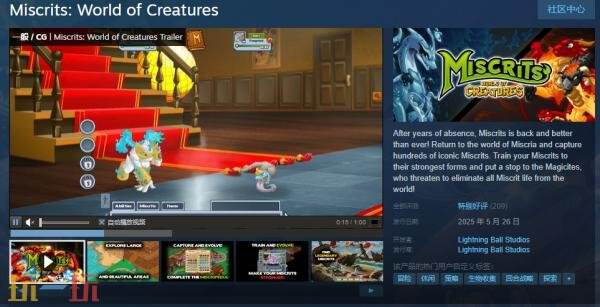 由Lightning Ball Studios开发并发行的生物收集休闲冒险回合战略游戏《Miscrits: World of Creatures》现已免费推出。