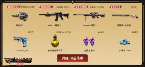 如果团队召集币不足以领取终极大奖,各位CFer也将有机会领取其他礼品。当团队召集币达到80且个人集币超过60后,各位CFer即可在战神-粉色甜心、千变-孔明皮肤、金牛座-典藏版或王者之石中选择一件领取。