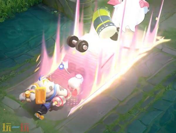 音效设计上,围绕皮肤元素中的卡通质感,用高音调弹性音效、气泡音效与电子合成器碰撞,更符合本次具有酷帅运动感的牛魔形象。在技能音效中融入健身器械Foley,配合Q弹的碰撞声与俏皮旋律切片,构建出趣味反差感。为了营造音效的动态趋势,以音调渐变与空间混响调节,既保留力量感基底,又在细节处增添灵动特质,使小牛鸭在战斗张力与喜剧节奏间达成平衡,从而提升联动辨识度、加强沉浸体验。