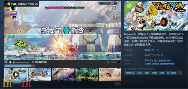 由TVT Co. Ltd.和Ratata Arts开发及Game Source Entertainment发行的《啪嗒砰》精神续作Roguelike节奏动作游戏《Ratatan》现已在Steam上线试玩demo,该游戏将于2025年推出。