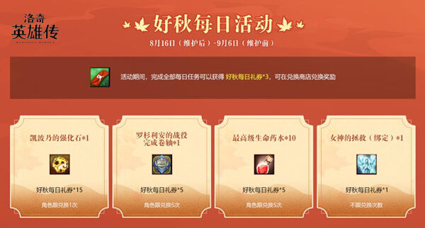 在秋天到来的时刻,游戏内也会上线多重与“秋”相关的福利活动!