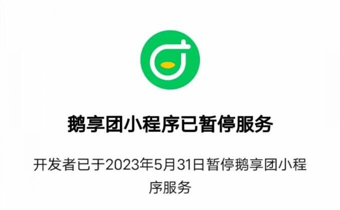 图注:鹅享团小程序暂停服务界面。