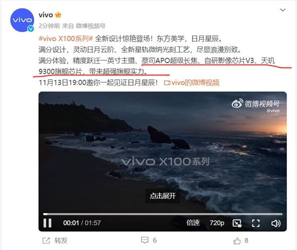 vivo发布X100系列预告片,宣布vivo X100系列将全球首发自研影像芯片V3和天玑9300旗舰芯片,带来超强旗舰实力。