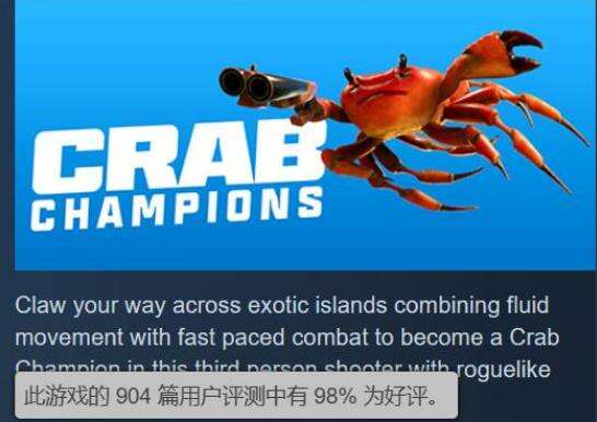 从游戏介绍和玩家评价来看,《螃蟹冠军》是一款类似《雨中冒险2》的动作类Rogue游戏,拥有快节奏射爆玩法和大量不同的敌人,玩家要不断收集战利品来强化自己。