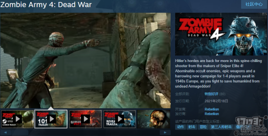本周,《僵尸部队》系列的新作《僵尸部队4:死亡战争》结束Epic独占,登陆Steam平台,感兴趣的玩家可以尝试一下,疯狂爆蛋的乐趣。