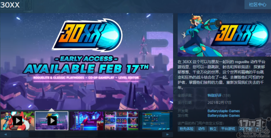 《30XX》是2016推出的《20XX》的续作,是一款将类似《洛克人X》的动作游戏的清晰控制和流畅动作、《以撒的结合》、《挺进地牢》、《死亡细胞》等现代roguelite游戏的可重玩性以及合作游戏模式融合在一起的作品。