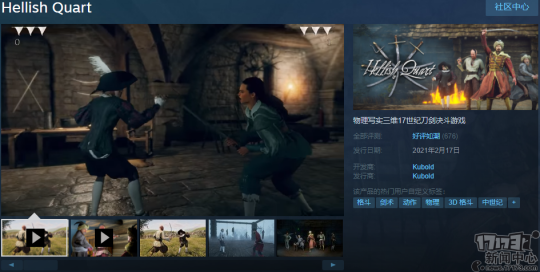 《Hellish Quart》是一款刀剑决斗题材的格斗游戏,游戏中剑刃遵从物理定律进行真实碰撞,游戏角色利用动作捕捉施展剑术技艺。扮演17世纪诸多剑客中的一员,运用军刀、迅捷剑、阔剑等形形色色的刀剑,游玩单人战役、街机模式或同好友进行本地多人对战。
